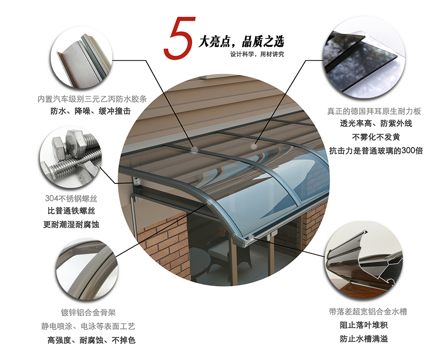 加強(qiáng)型鋁合金骨架,抗、紫外線進(jìn)口耐力板,不變形不變色,歷久彌新